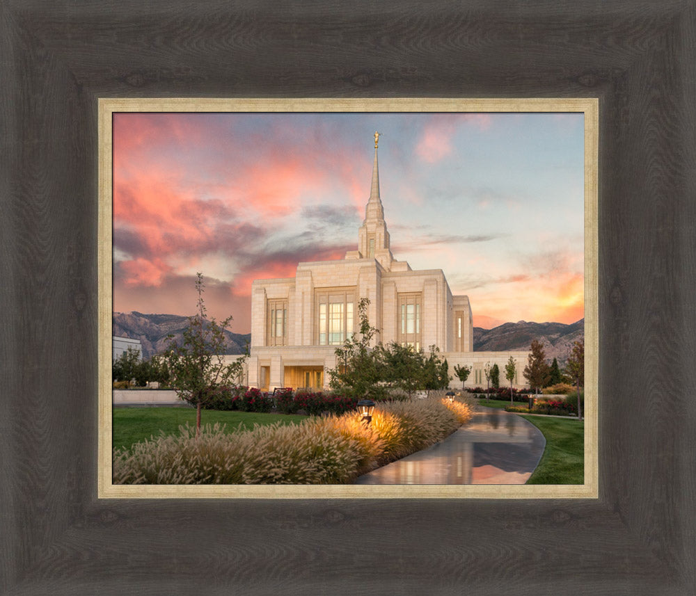 Ogden Temple - Garden Path 12x14 framed textured print medium brown frame